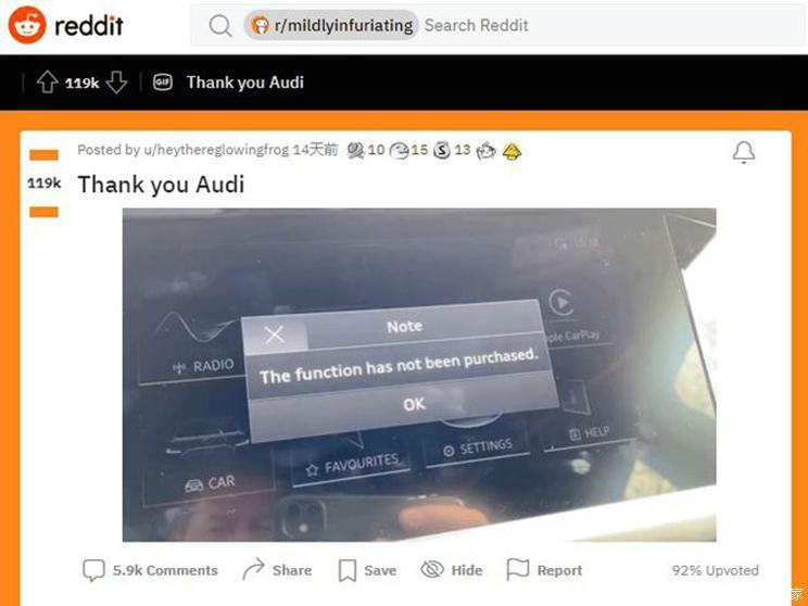 值得一提的是,奥迪在海外的订阅服务也是被海外车主一顿吐槽。比如在奥迪Q4 e-tron上的一个多区空调按键,奥迪并没有取消它的物理按键,但是当你点击后屏幕会温馨的提示您该功能尚未支付开通,车主直呼“栓Q,奥迪”。