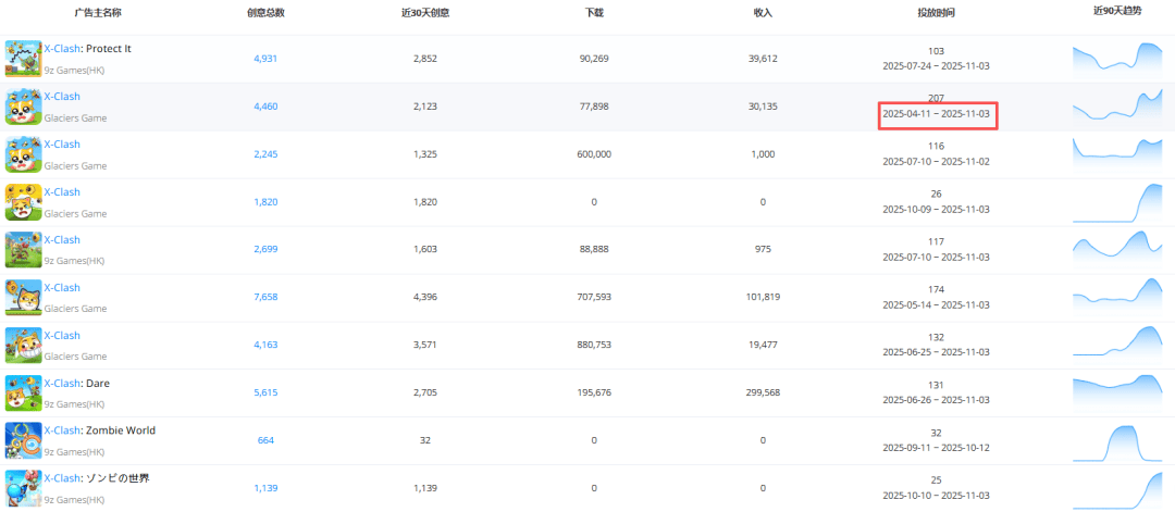 但需要警惕的是,在3年多的副玩法买量洗礼下,单个用户的获客价格早已明显提升,从投放趋势来看,该作的买量力度似乎也有所下滑,加之《Last War》类产品数量庞大,用户体验已经不再新鲜,因此在没有明显差异化的情况下,其强势表现能否长线保持,还需要继续观察。