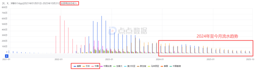 整个2022年该作收获流水6.73亿元,同比增长了1465%,次年其年收入也基本维稳在6.3亿元左右,但