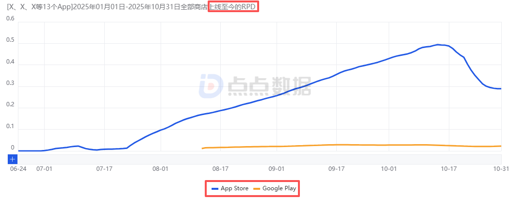 iOS游戏畅销榜方面虽然反应相对较慢,但10月底开始也逐渐有了声量,当前位于19个区域市场TOP100(冰岛第14、美国第74、加拿大第93、荷兰第75、菲律宾第50),欧洲及东南亚部分重要市场也已经在150名以上浮动。