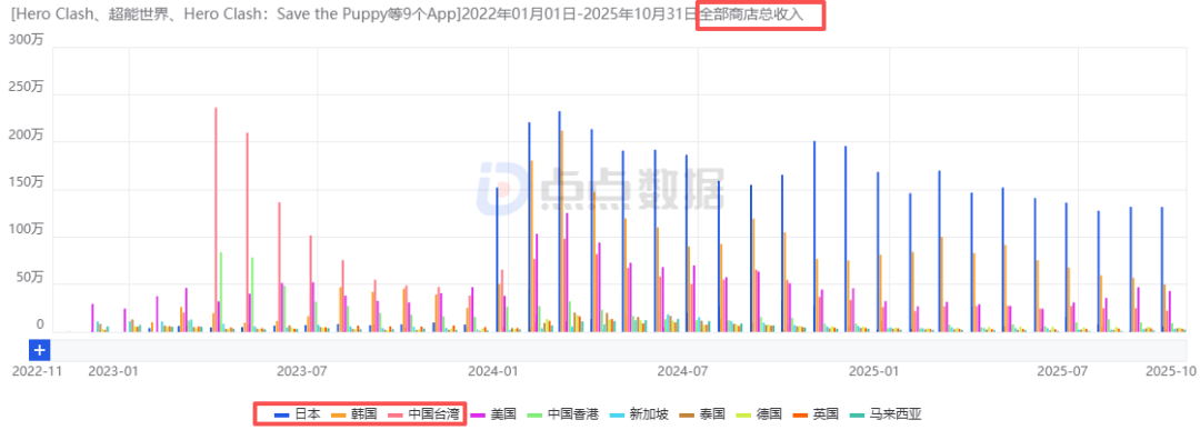 紧接着在分析具体市场表现之前,需要特别提到的是,该作和冰川网络旗下其他出海产品一样,会在不同市场进行分包发行,目前其在美洲、欧洲、东南亚、中国港澳台、印度、日本、韩国均有不同包体。
