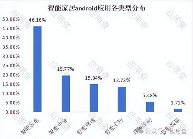 根据应用查数据统计,截至2025年9月初,智能家居行业以移动App为主。公众号和小程序以智能家居硬件销售为主,其中由于蓝牙技术的限制,所以小程序以蓝牙控制家居的为少数。未来随着小程序蓝牙技术的成熟,设备连接变得更简单,小程序的控制能力和适用场景会进一步加强,数量占比有望持续上升。