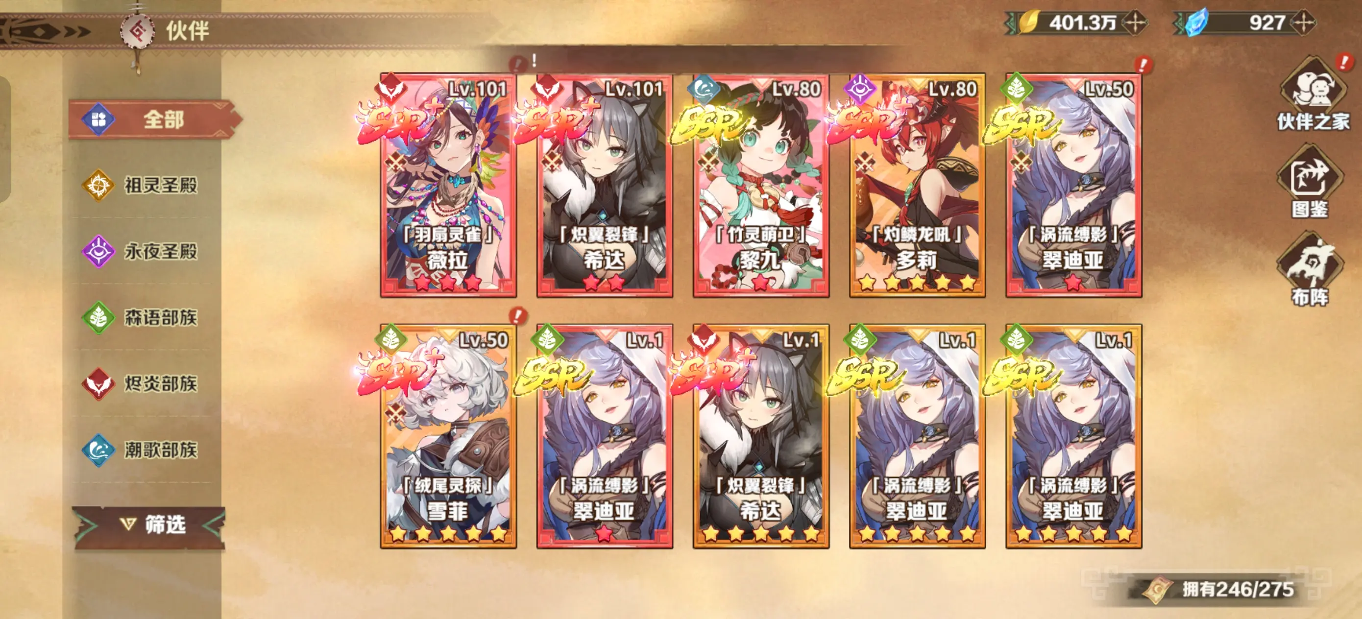 2.这游戏只建议ssr+培养,ssr都是狗粮或者过渡用(可以升星,但是卡着狗粮星级来,内测回退需要氪金)。