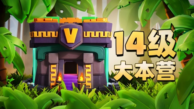首先本次更新是以丛林为主题的更新,14级大本营的开启直接给玩家带来了海量的全新内容。玩家最关心的就是大本营升级14级的问题,建筑外观上,14级本整体紫金色搭配,并刻有古老的象形图案文字,搭配流淌的墨绿色神秘液体从细节上体现了这次更新大本营的丛林主题。