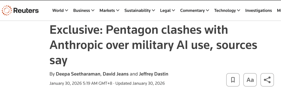 例如,路透社去年一篇报道就提到: 消息人士称Anthropic担心其工具可能被用于监视美国公民,或在缺乏人类监督的情况下用于武器攻击目标选择。